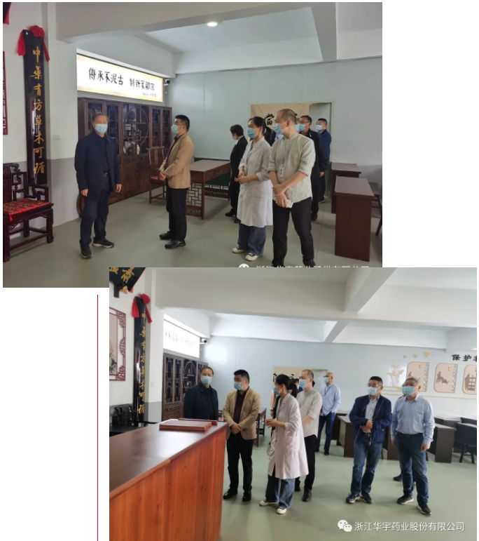 檢測中心和集傳承與創(chuàng)新為一體的提升員工技能素質(zhì)的蕭若人中藥炮制傳承工作室。各位領導饒有興趣地了解中藥材(尤其是植物類、