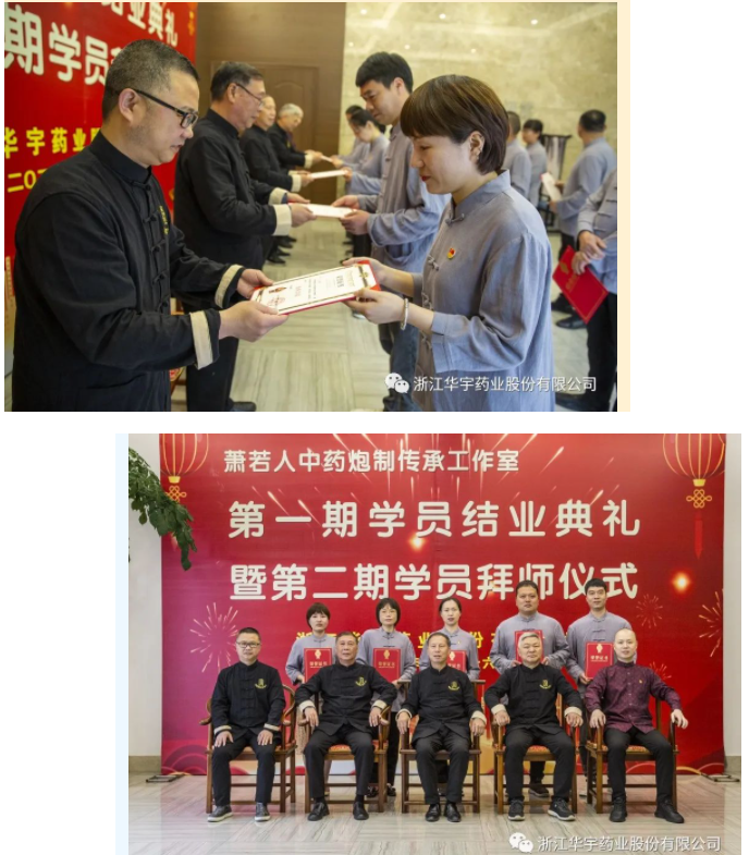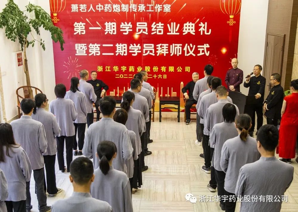 在歡樂和熱烈的掌聲中,蕭若人中藥炮制傳承工作室第二期學(xué)員拜師儀式完美結(jié)束。標(biāo)志著華宇藥業(yè)在守正創(chuàng)新、薪火相傳的道路上
